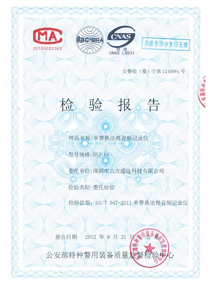 產品首次通過公安部檢測中心檢驗