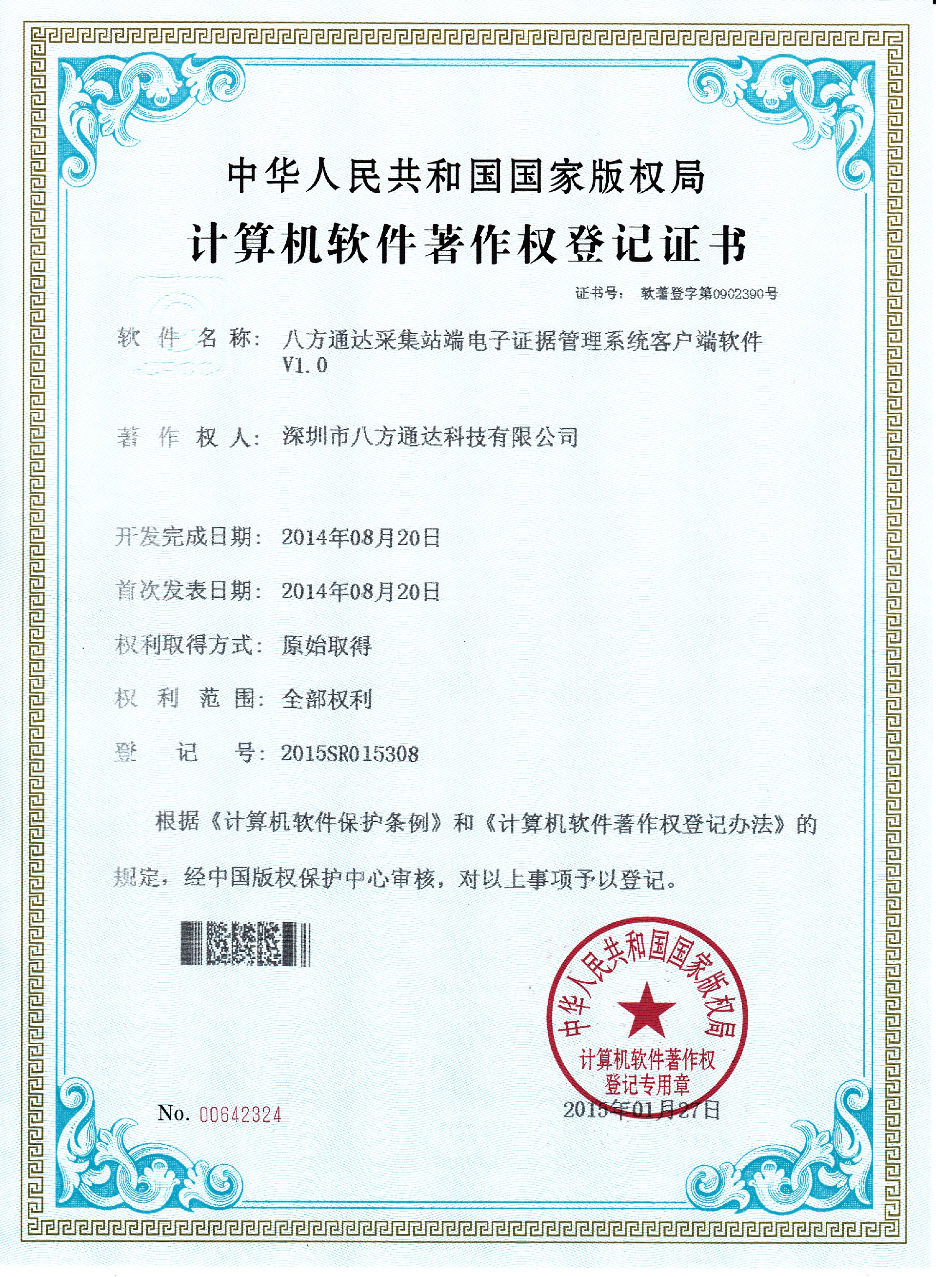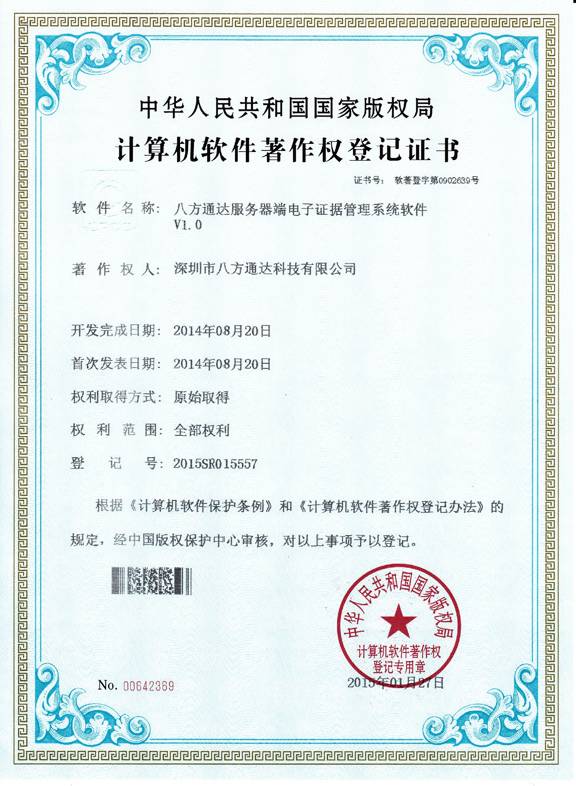 研發出首款電子單警執法視音頻記錄系統管理平臺并申請了相關軟件著作權7項