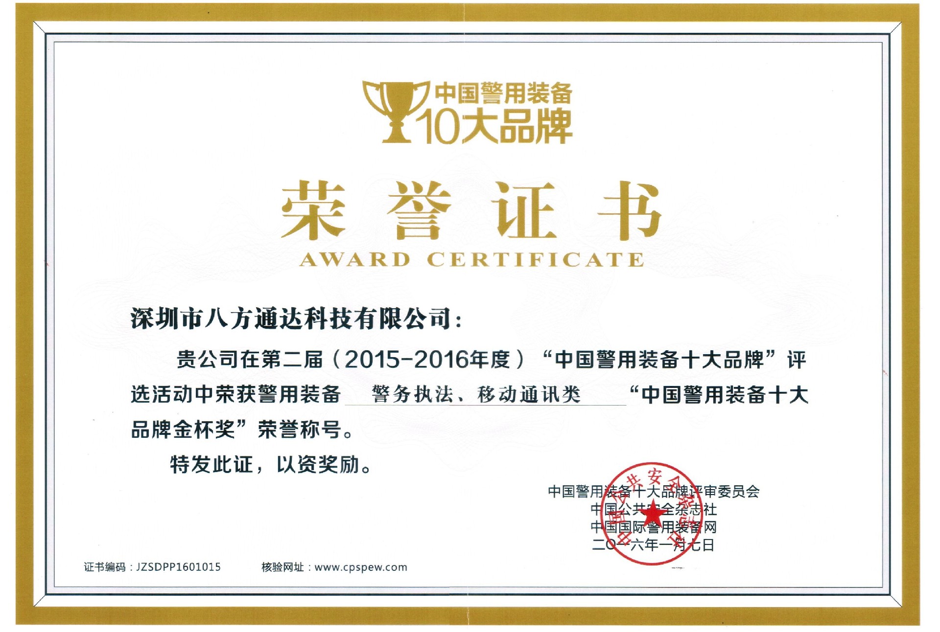 警用裝備十大品牌金杯獎