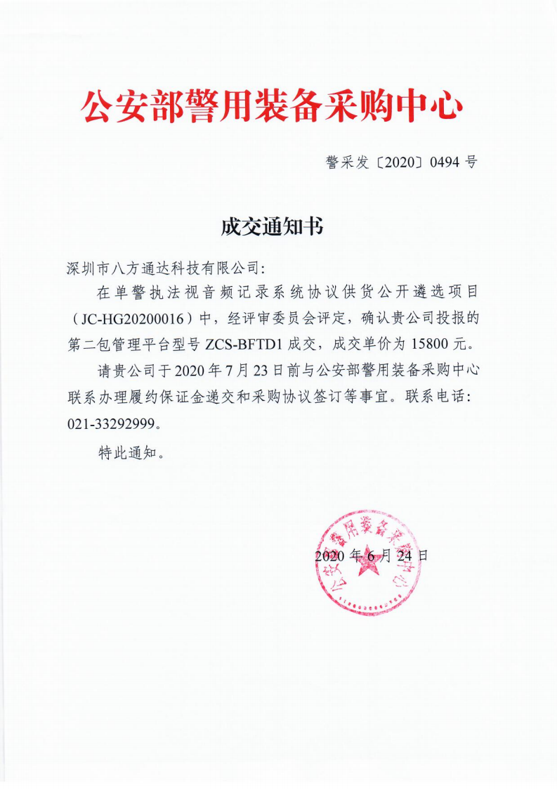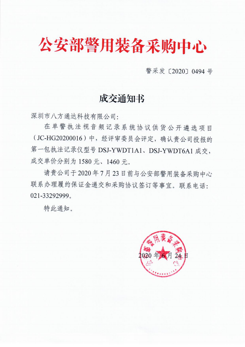 入圍2020年公安部警用裝備采購中心協議供貨單位